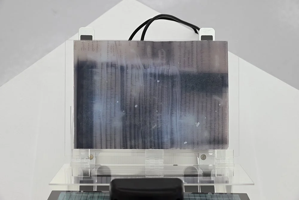 a developing slate reimagines the palimpsest as a reference for generative systems, where information accumulates within the material conditions of its storage.