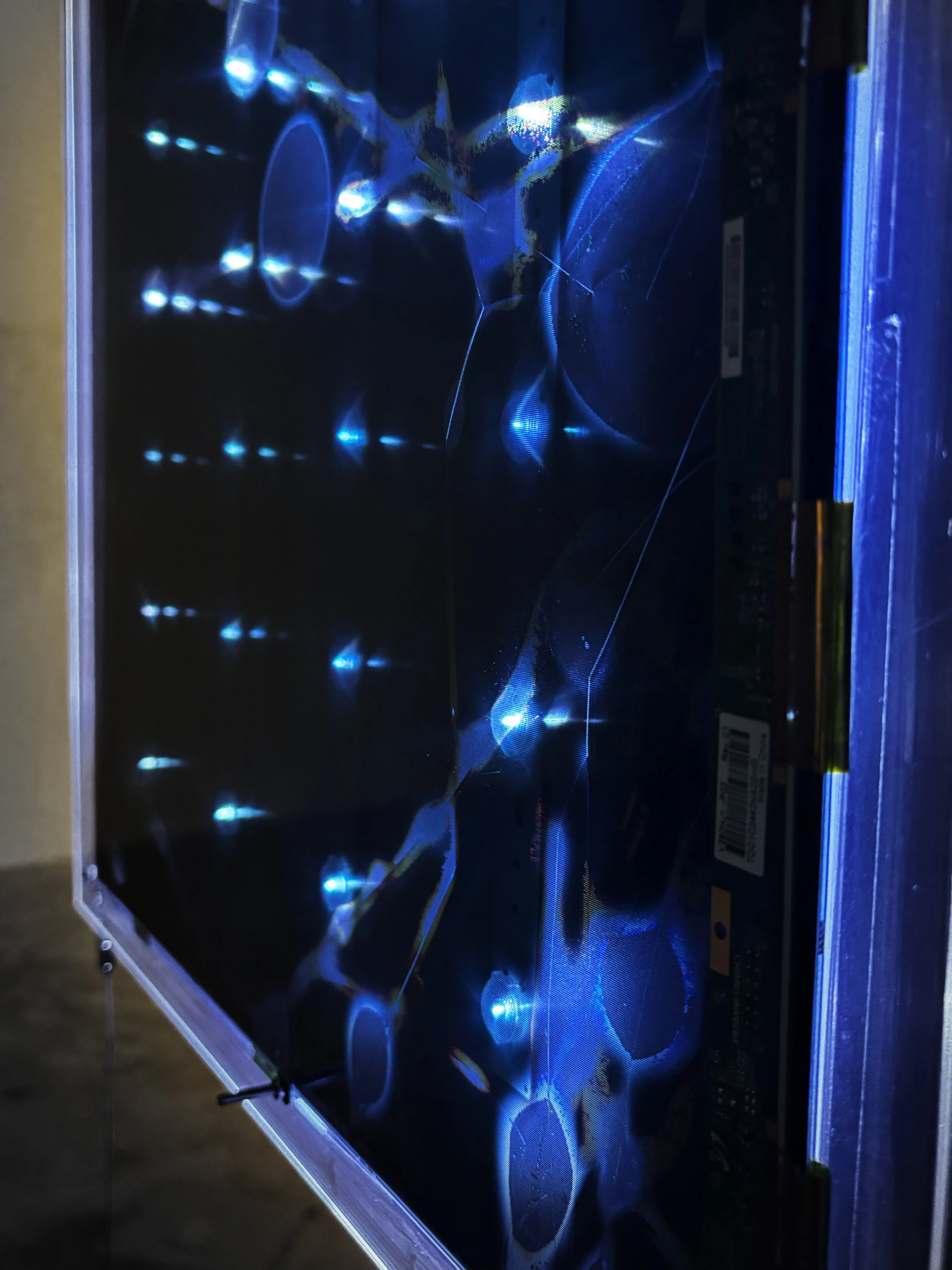 Deconstructed screen components, acrylic panels and translucent prints