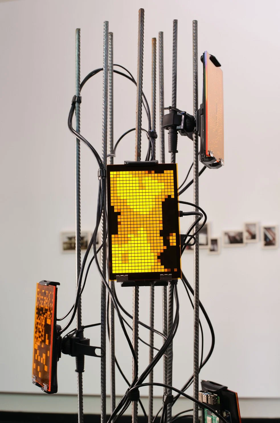 Concrete, rebar, silica sand, computer, LCD screens, cables, custom software